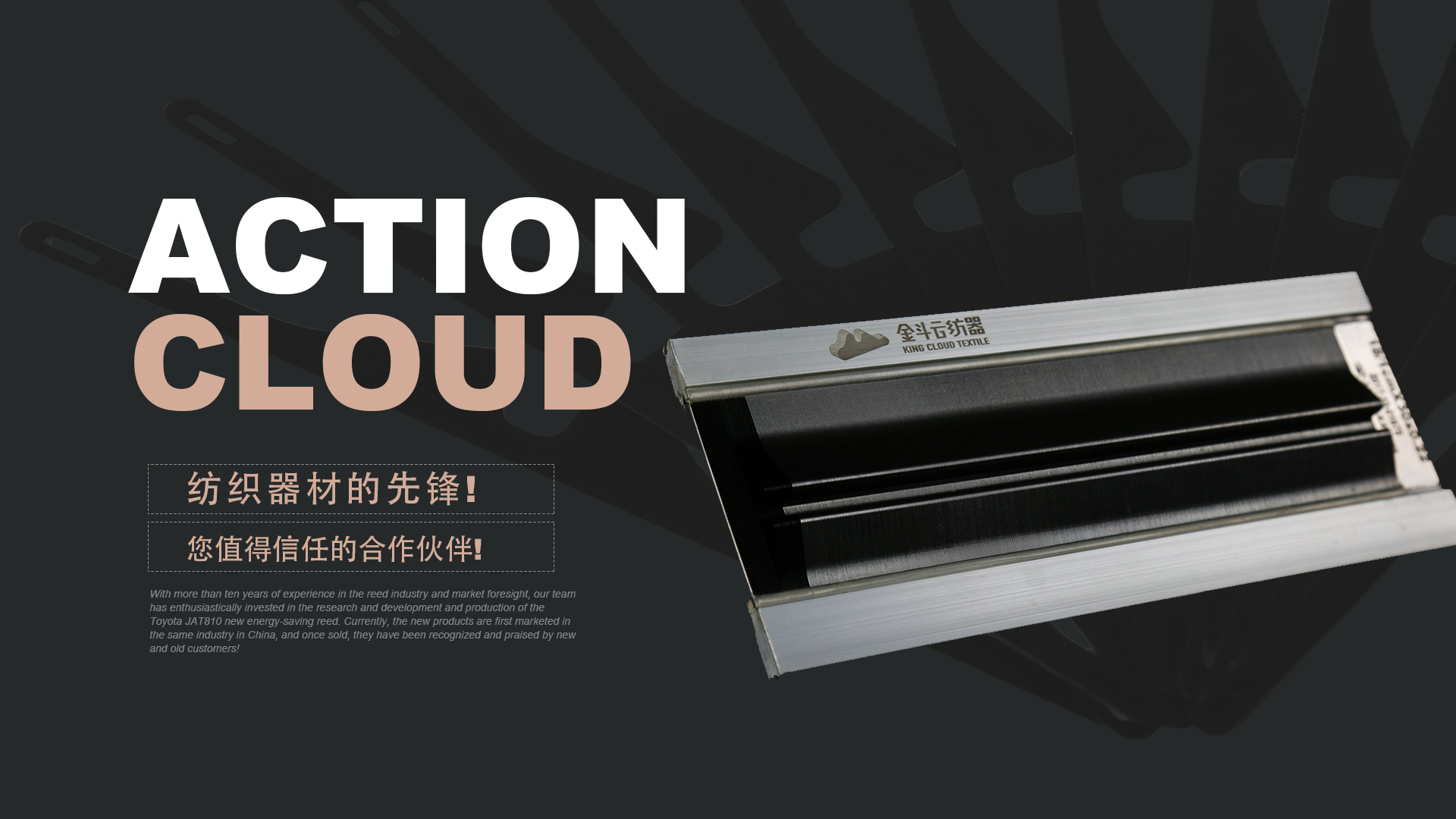 憑借十多年鋼筘行業(yè)經(jīng)驗及對市場的前瞻性,我們團隊滿懷熱情的投入到豐田JAT810新型節(jié)能鋼筘的研發(fā)和生產(chǎn)當中,目前新產(chǎn)品在國內(nèi)同行業(yè)中先行上市銷售,一經(jīng)銷售就得到了新老客戶的認可和好評!